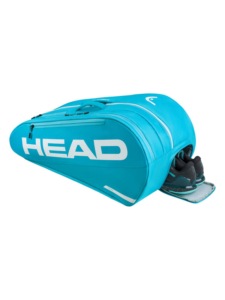 Zu den weiteren Merkmalen gehören ein integriertes Schuhfach und eine innere Zubehörtasche mit Reißverschluss. Mit dem Rucksack-Tragesystem und den oberen Griffen können Sie wählen, ob Sie die TOUR RACQUET BAG L BL über die Schulter oder den Rücken tragen oder in der Hand halten möchten. Als Beispiel dafür, wie HEAD versucht, den Plastikverbrauch zu reduzieren, besteht das Etikett aus recyceltem Papier und ist mit Hanfschnur gebunden, und die Tasche wird in einer recycelten Plastiktüte präsentiert.